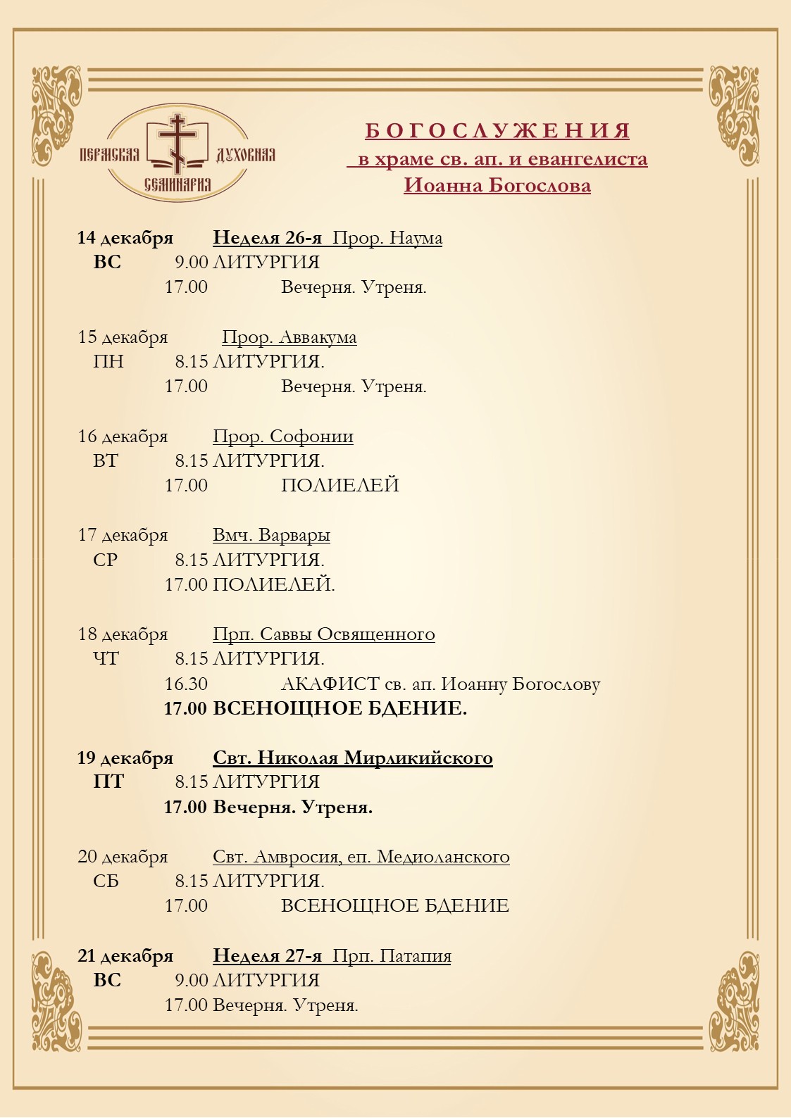 // Расписание богослужений