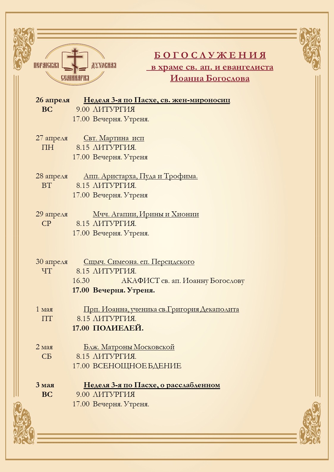 // Расписание богослужений