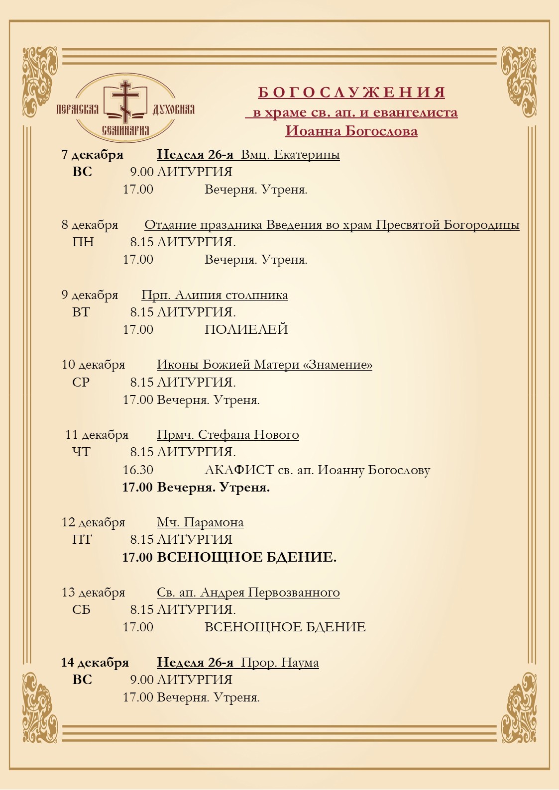 // Расписание богослужений