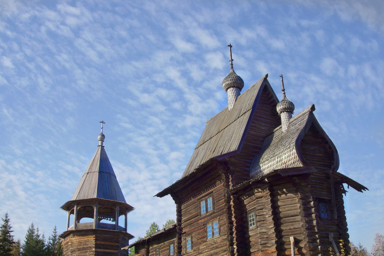 Студенты изучили конструкцию и стиль Спасо-Преображенской и Богородицкой деревянных церквей и колокольни, которым больше 300 лет.