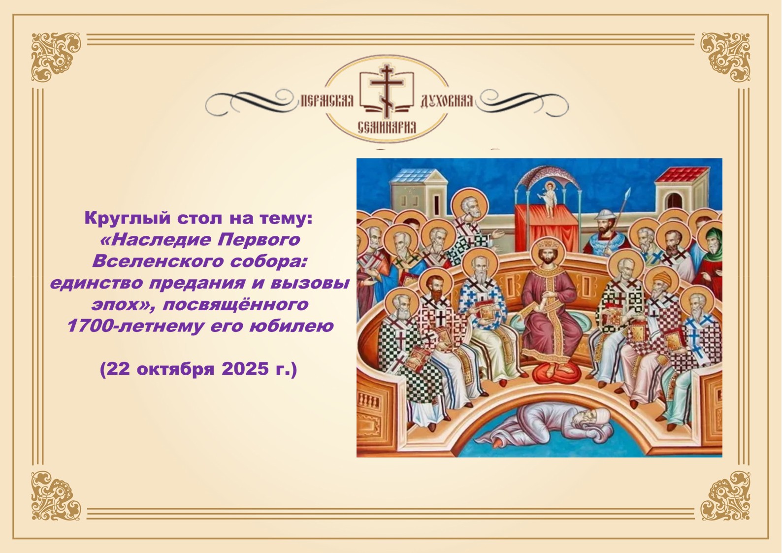 22 октября в семинарии состоится круглый стол, посвященный юбилею Первого Вселенского собора.