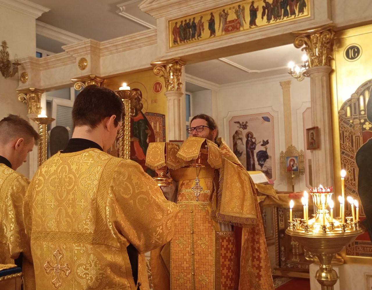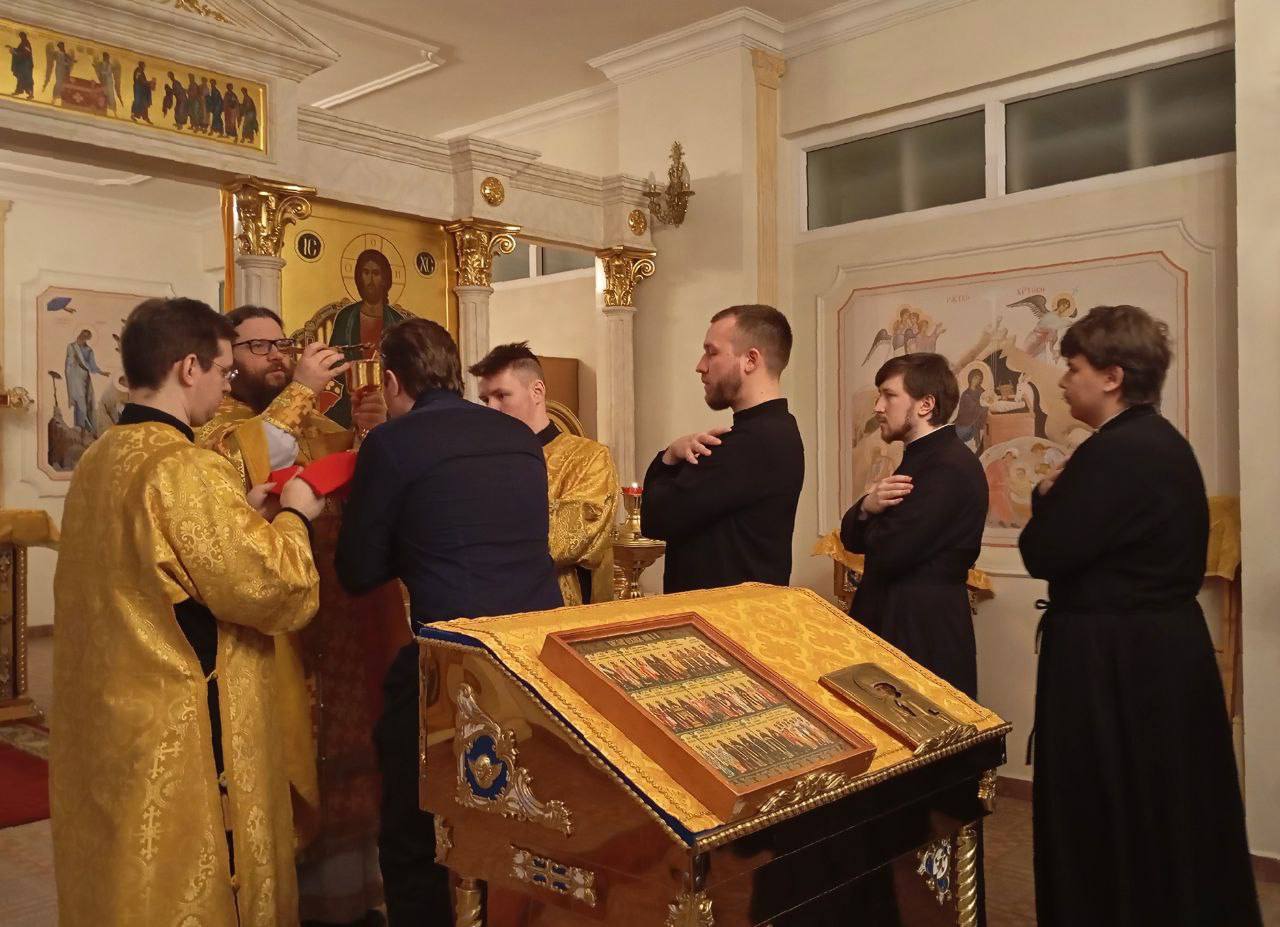 Накануне, 18 декабря, отец Роман, в со служении духовника семинарии священника Алексия Никитина, совершил Всенощное бдение праздника.