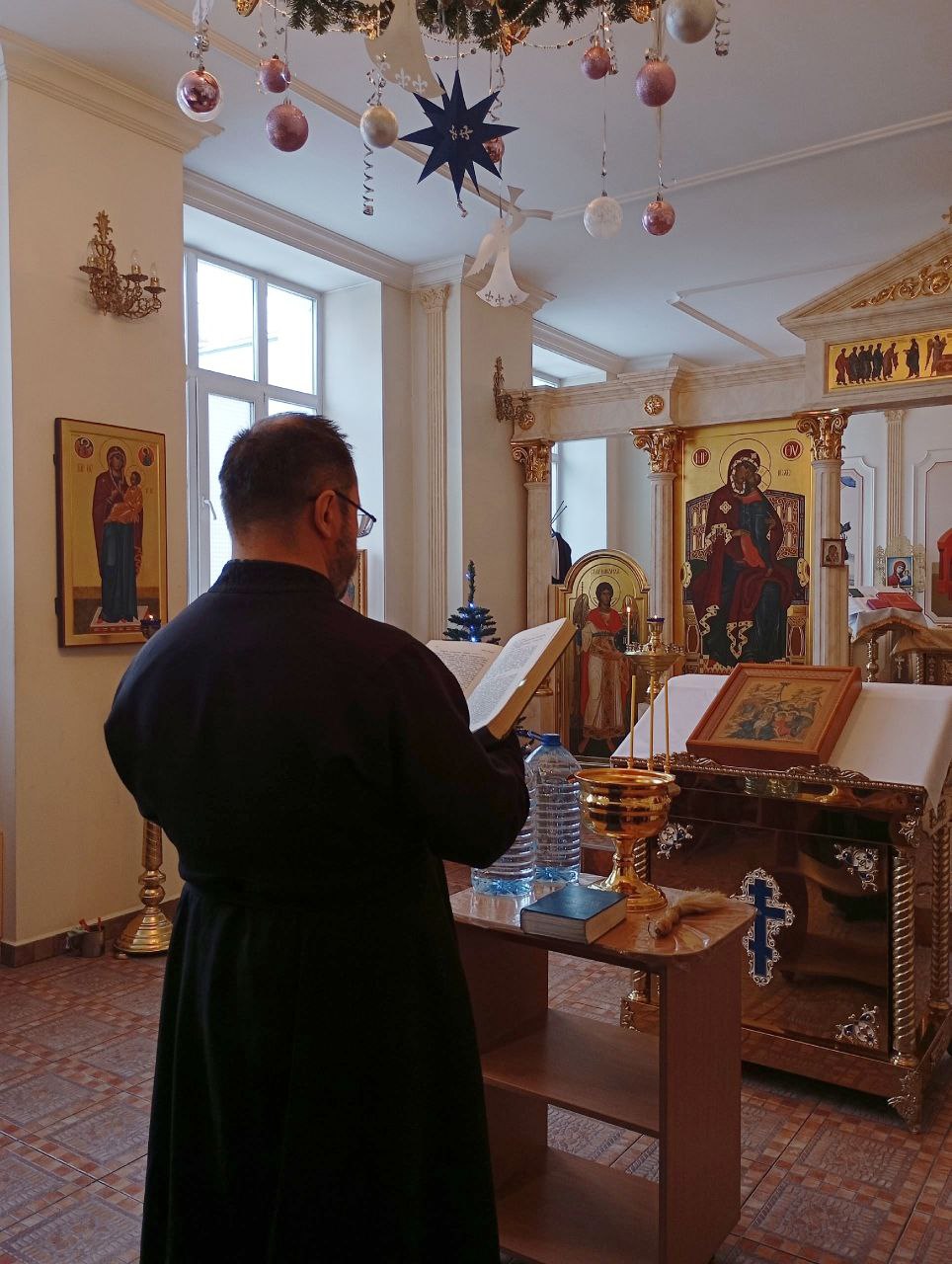 После великого освящения воды отец Роман окропил учебные и жилые помещения семинарии.